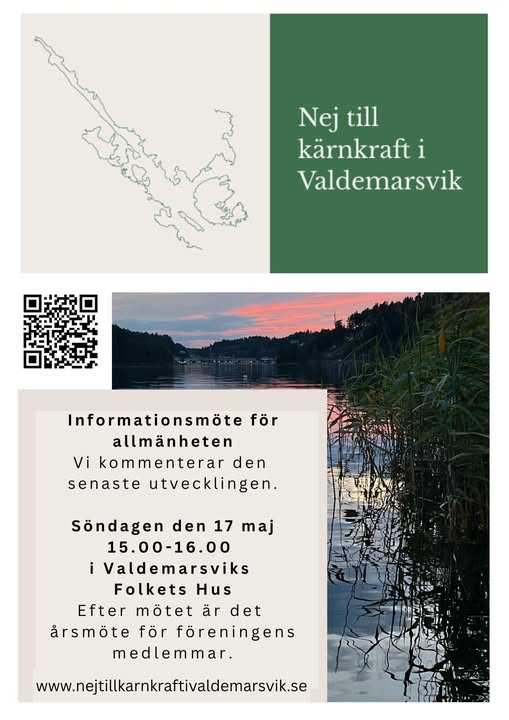 Efter informationen blir det årsmöte med föreningen Nej till kärnkraft i Valdemarsvik.