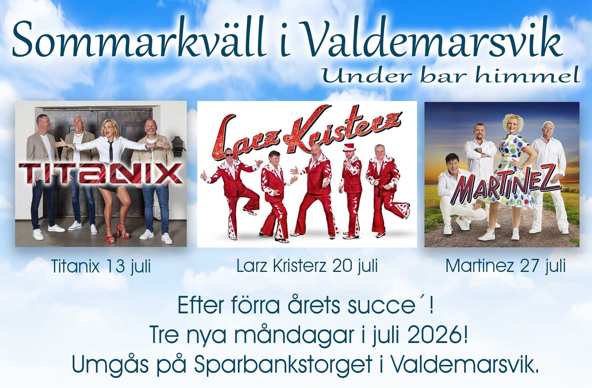 Under tre sommarkvällar i juli kan besökare njuta av framträdanden från tre av Sveriges populäraste dansband, lokala utställare, aktiviteter och mycket mera.